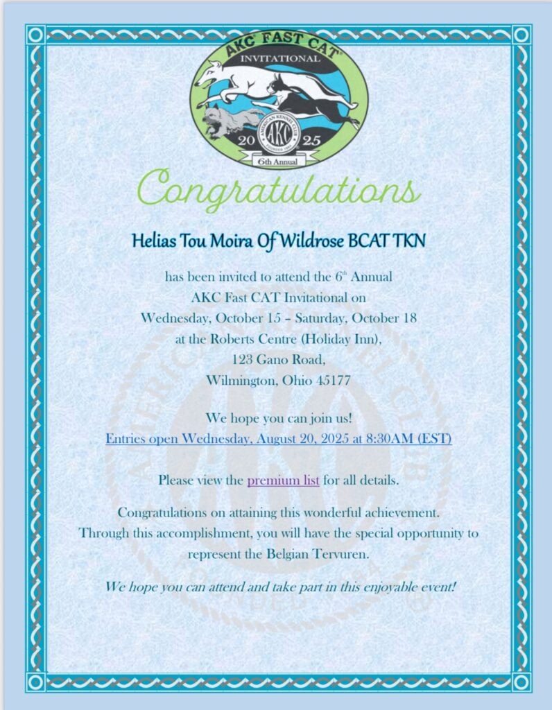 On August 19th, 2025 we received a very exciting email from the AKC. Akin to when Harry Potter first opened his letter from Hogwarts, I couldn’t contain my elation and surprise after learning that Halo had been invited to the Fast CAT Invitational.